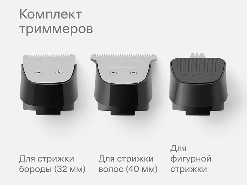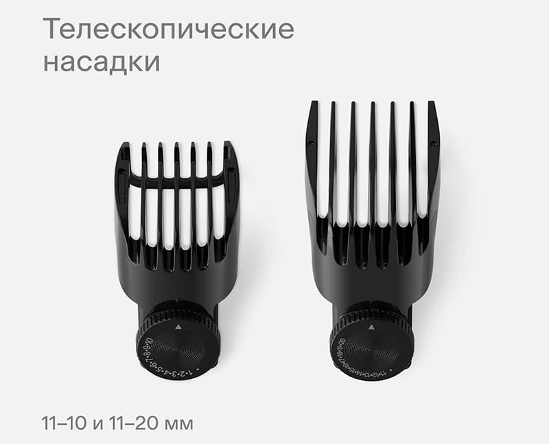 Каждая насадка снабжена металлическим ободком, который притягивается к корпусу машинки и фиксируется без люфта. Магнитное крепление работает на расстоянии до 5 мм и не требует точного совмещения.