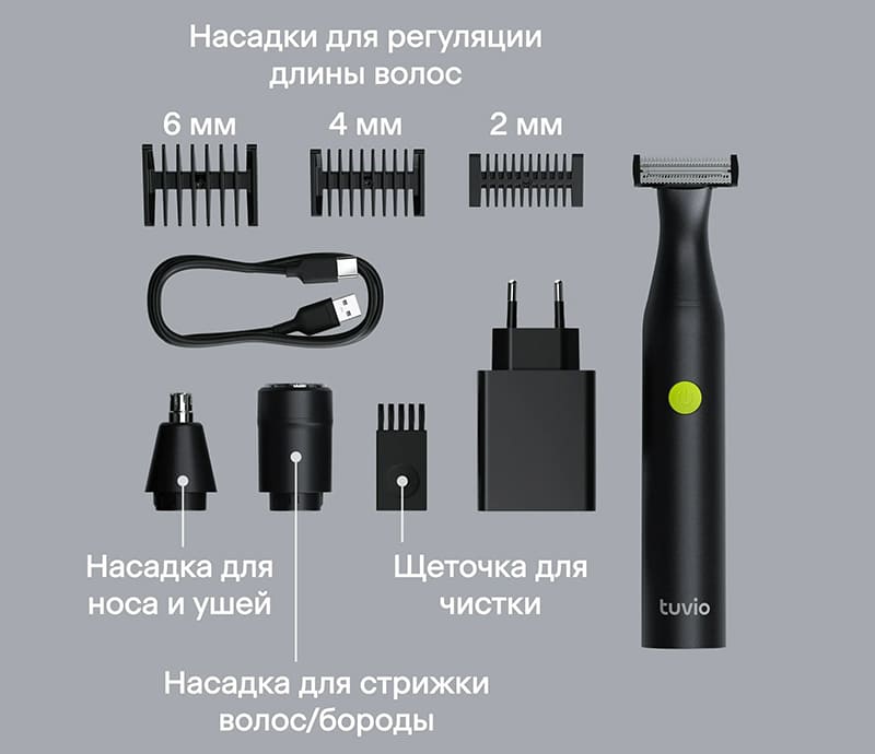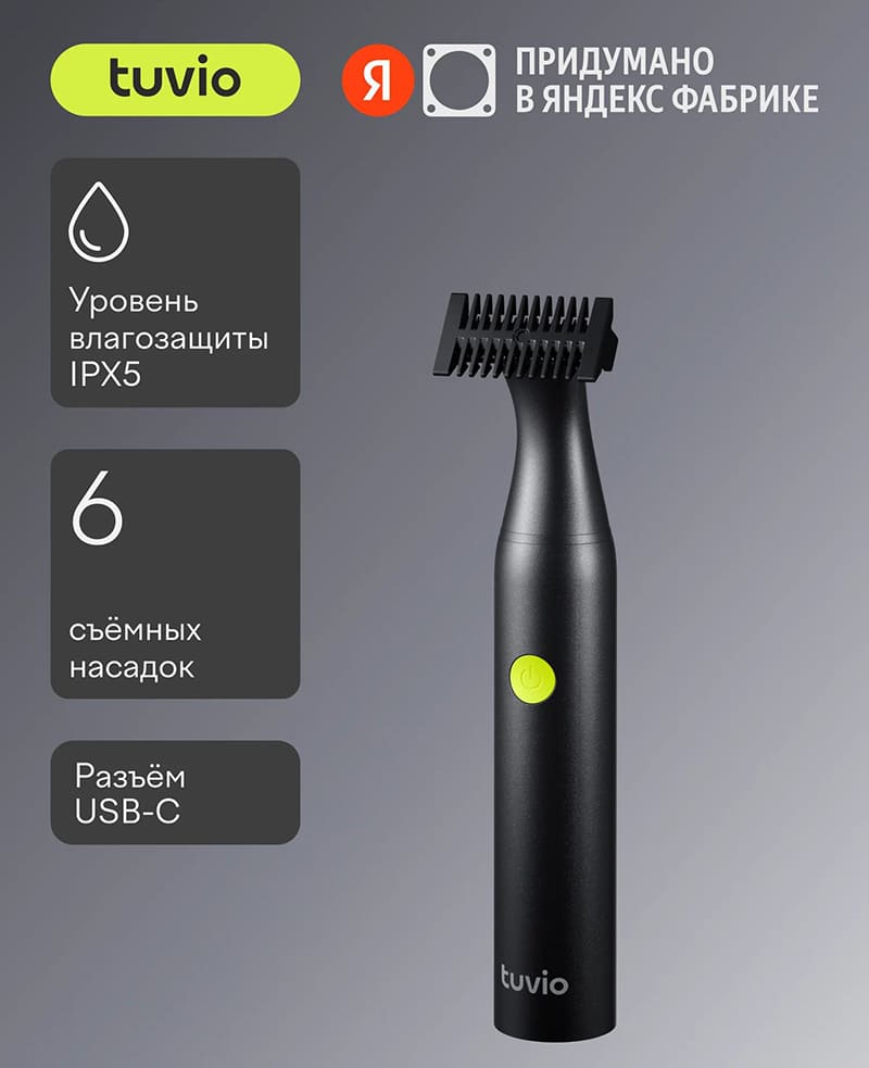 Триммер для стрижки волос Tuvio TR-6DG — компактное устройство от Яндекс Фабрики с шестью съёмными насадками, которые охватывают все задачи по уходу за волосами и бородой. Триммер работает на аккумуляторе, обеспечивая до 90 минут непрерывной работы. Основное отличие модели — предельная простота в использовании и универсальность благодаря разнообразным насадкам для разных целей.