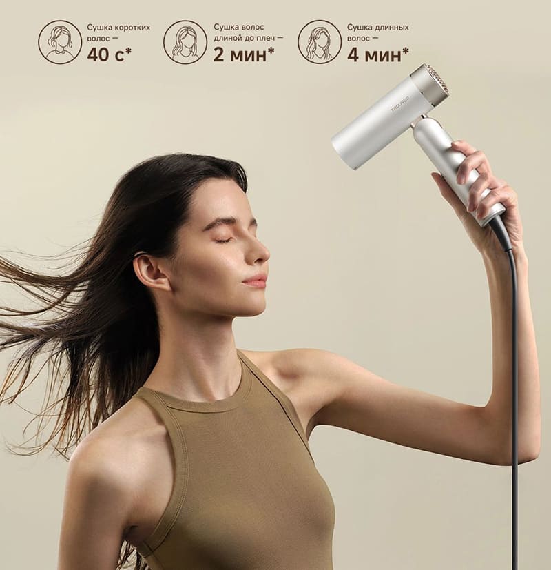 Рабочие характеристики фена Flip 10 оптимизированы с точки зрения энергоэффективности и преобразования тепла. Он способен поддерживать впечатляюще мощный поток воздуха 56 м3/ч, подаваемый со скоростью 65 м/с, чтобы ускорить нагрев. Быстрая и эффективная сушка волос всего за 40 секунд.