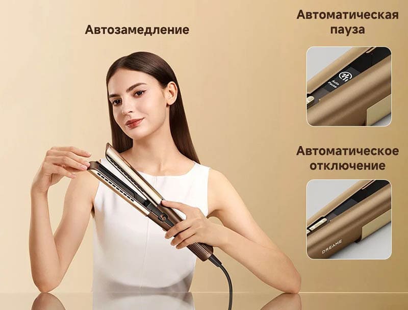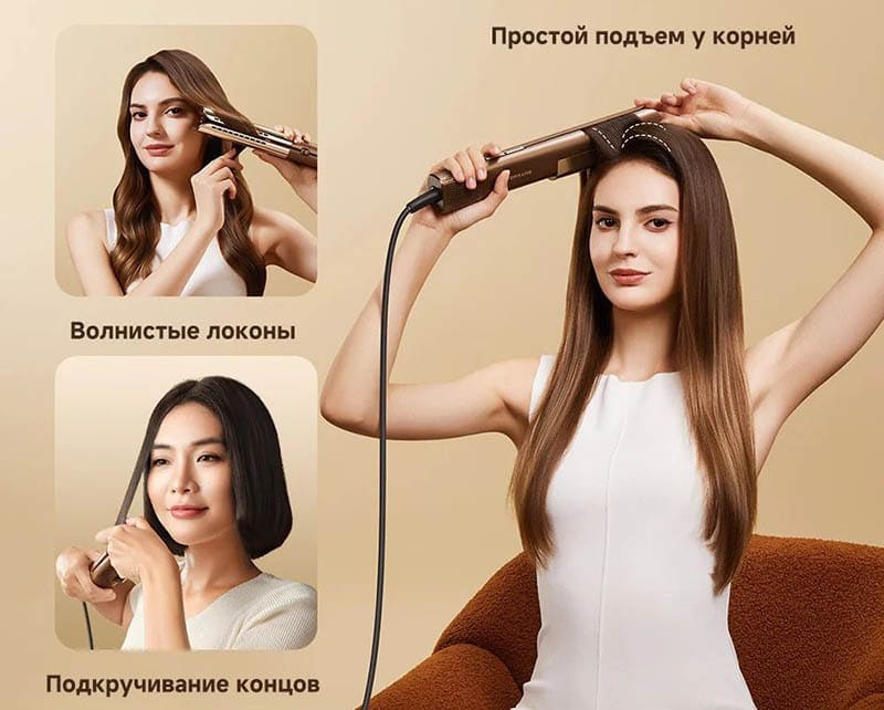 Обеспечивает естественно гладкую и блестящую прямую прическу без ущерба для волос.