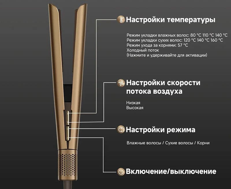- Режим для сухих волос – получите универсальные и гладкие прически без усилия