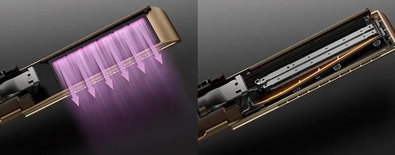 Благодаря надежному креплению выпрямляющих пластин, Aero Straight предлагает специальный режим сушки от корней, обеспечивая мягкий поток воздуха, защищающий как пряди волос, так и здоровье кожи головы во время укладки.