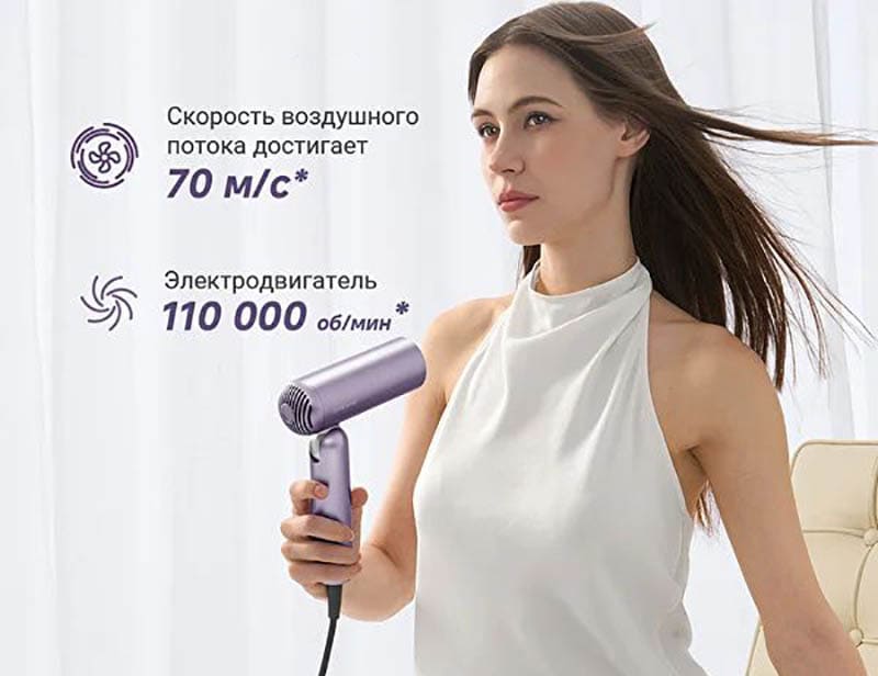 Мощный бесщеточный двигатель фена Pocket Ultra с частотой вращения 110 000 об/мин позволяет высушить короткие волосы за 40 секунд. Быстрый мощный воздушный поток со скоростью 70 м/с разглаживает вьющиеся волосы.