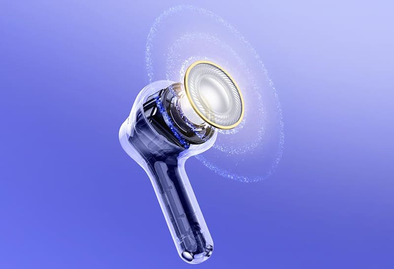Хотя в модели отсутствует активное шумоподавление для музыки, микрофоны оснащены технологией AI ENC (Environmental Noise Cancellation) для звонков. Алгоритмы искусственного интеллекта анализируют окружающую обстановку и отсекают посторонние шумы — ветер, гул транспорта или разговоры прохожих, передавая собеседнику только чистый голос владельца.