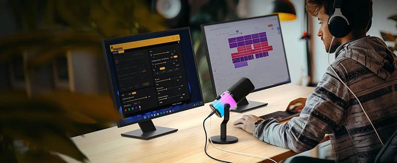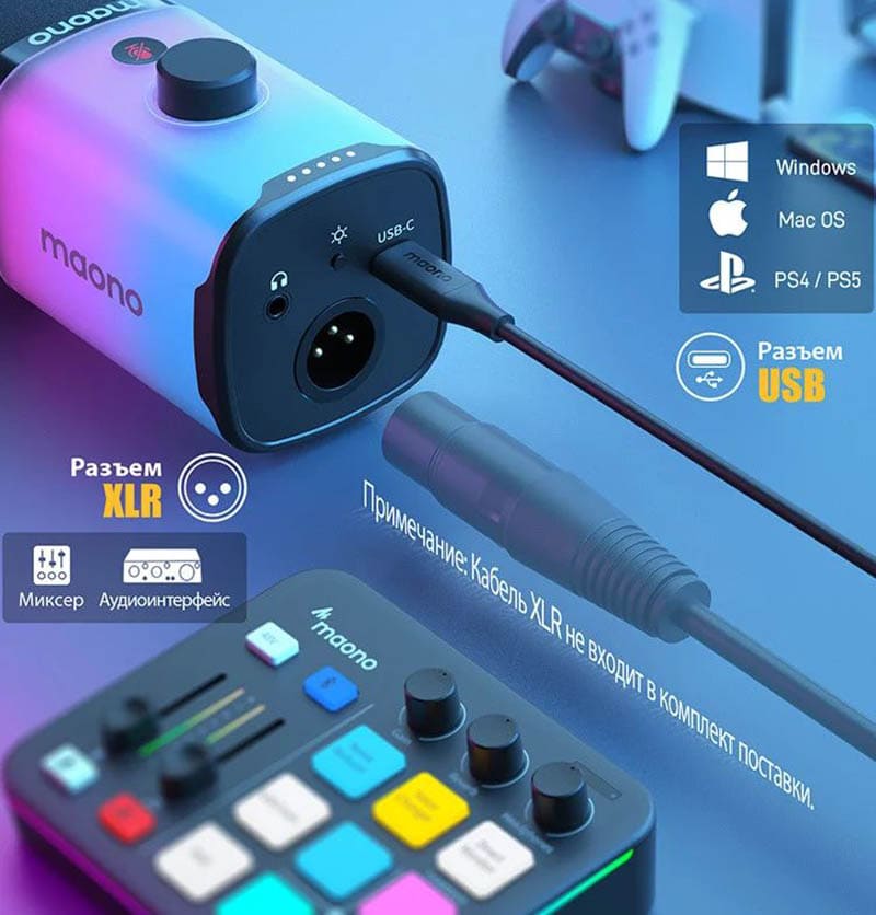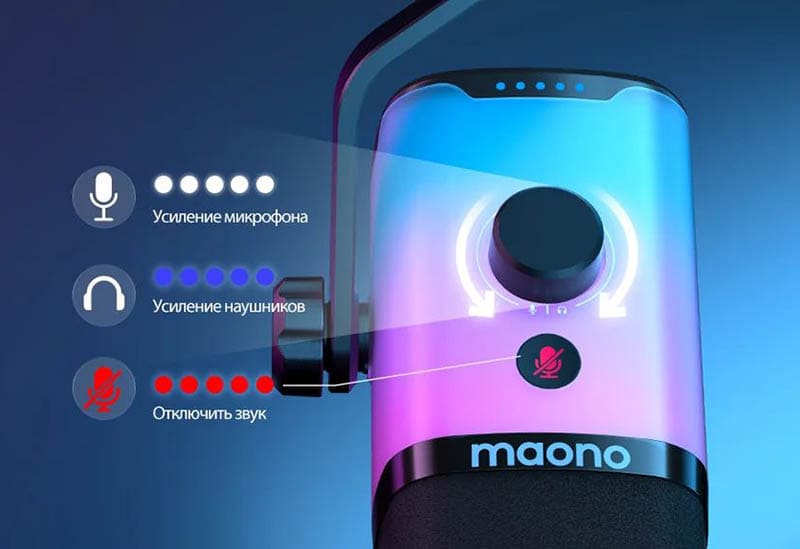 Maono PD100X RGB — это универсальный и стильный инструмент для качественной записи голоса, который сочетает современный дизайн, функциональность и удобство эксплуатации. Это отличный выбор для тех, кто ценит насыщенный звук и визуальные эффекты во время работы с аудио.