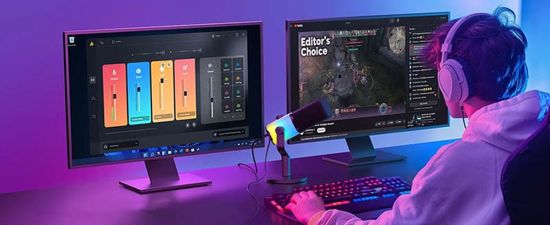 Особенностью модели является яркая RGB-подсветка, которую можно настраивать под настроение или стиль рабочего пространства, создавая уникальную атмосферу во время стриминга.