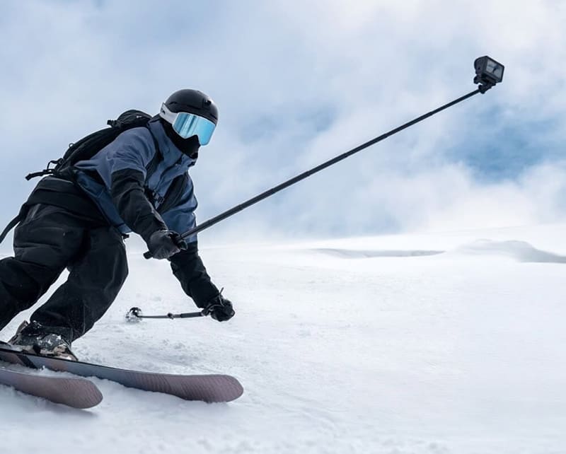 В комплект входит раздвижная палка длиной до 1,5 метра. Это позволяет снимать себя с расстояния (без помощи другого человека), группировать людей в кадре, или поднимать камеру выше для лучшего ракурса. Палка лёгкая и компактная в сложенном виде, поместится в рюкзак.
