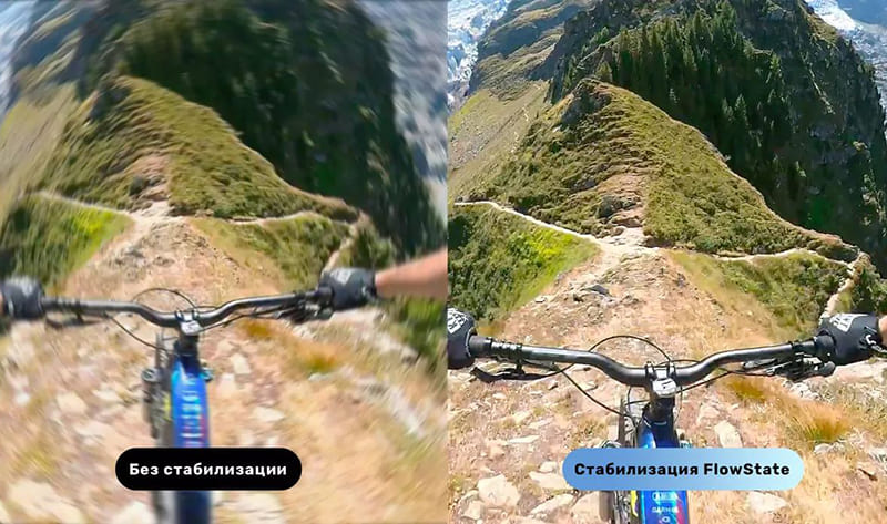 Система стабилизации использует гироскоп с шестью осями для анализа движений камеры в пространстве. FlowState автоматически срабатывает при съёмке и обеспечивает гладкое, профессионального качества изображение даже при интенсивных движениях: