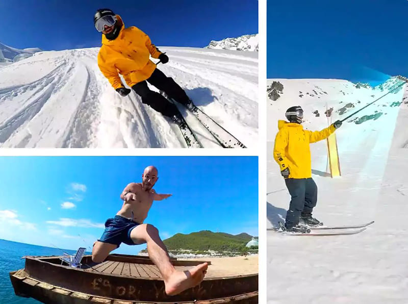 Конструкция камеры рассчитана на экстремальное использование и способна выдержать падения и удары. Сенсорный экран 2,29 дюйма защищен прочным закалённым стеклом, а линзы можно дополнительно защитить липкими защитными щитками. Такой подход гарантирует надёжность камеры при съёмке в суровых условиях: на горных склонах, морских волнах или в экстремальных видеопроектах.