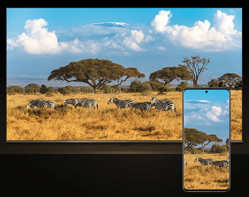 Телевизор оснащён QLED-дисплеем, который использует широкую цветовую гамму стандарта DCI-P3 и точную калибровку для передачи насыщенных и реалистичных оттенков. Технология квантовых точек позволяет воспроизводить более 1,07 миллиарда цветов с исключительной глубиной и детализацией, обеспечивая эффект полного погружения без искажений.