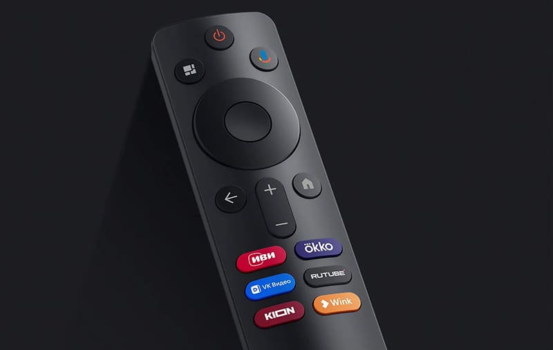- Пульт в комплекте: Xiaomi – черный с голосовым управлением, кнопками Ivi, Okko, VK Видео, RUTUBE, KION, Wink