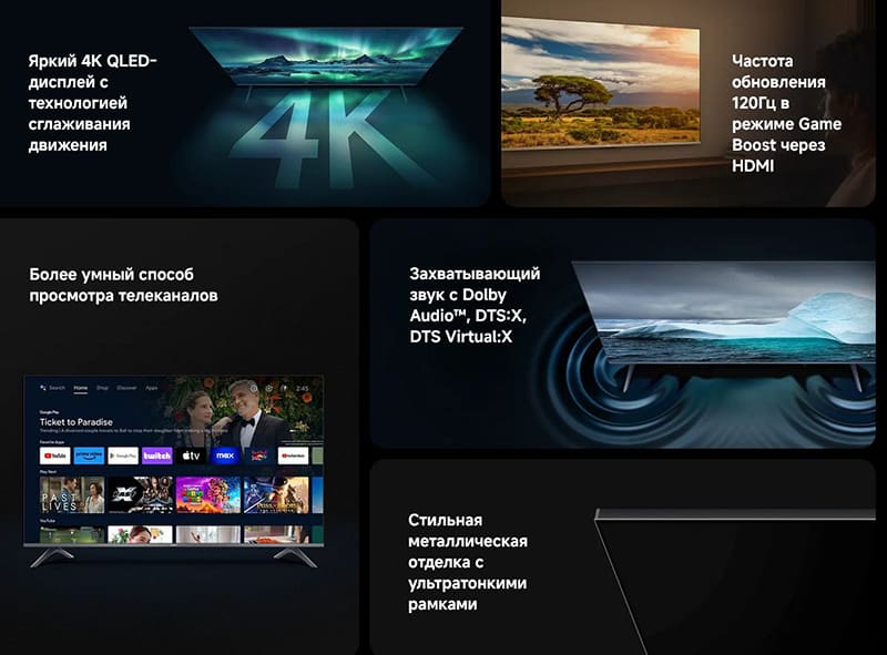 Телевизор оснащён системой профессиональной аудионастройки Xiaomi, автоматически подстраивающей звуковые профили под просматриваемый контент.