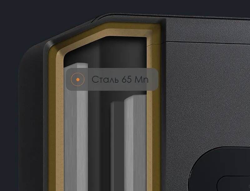 Корпус выполнен из прочного материала, стойкого к повреждениям, а замок и управляющий механизм изготовлены из высокопрочной стали. При попытке физического взлома сейф моментально отправляет уведомление на смартфон владельца.