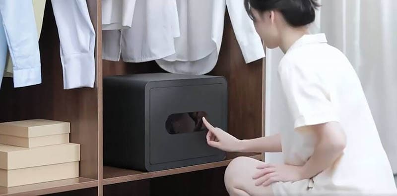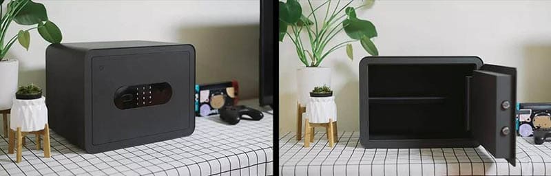 Сейф крепится стационарно и при попытке перемещения уведомляет владельца. При закрытии дверцы звучит звуковое подтверждение блокировки. Питается от батареек с возможностью аварийного питания через USB Type-C. При снижении заряда до 10% приходит уведомление о необходимости замены батареек. В среднем комплект батареек служит около года.