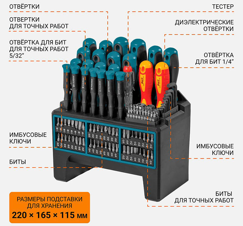 Набор отверток Bort BTK-114 (114 предметов)