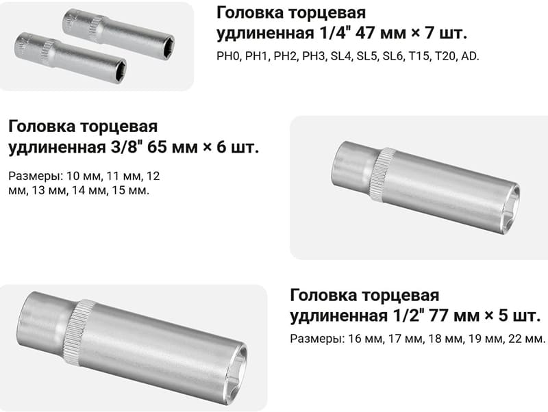 - Головка торцевая удлиненная 1/2" (5 шт)