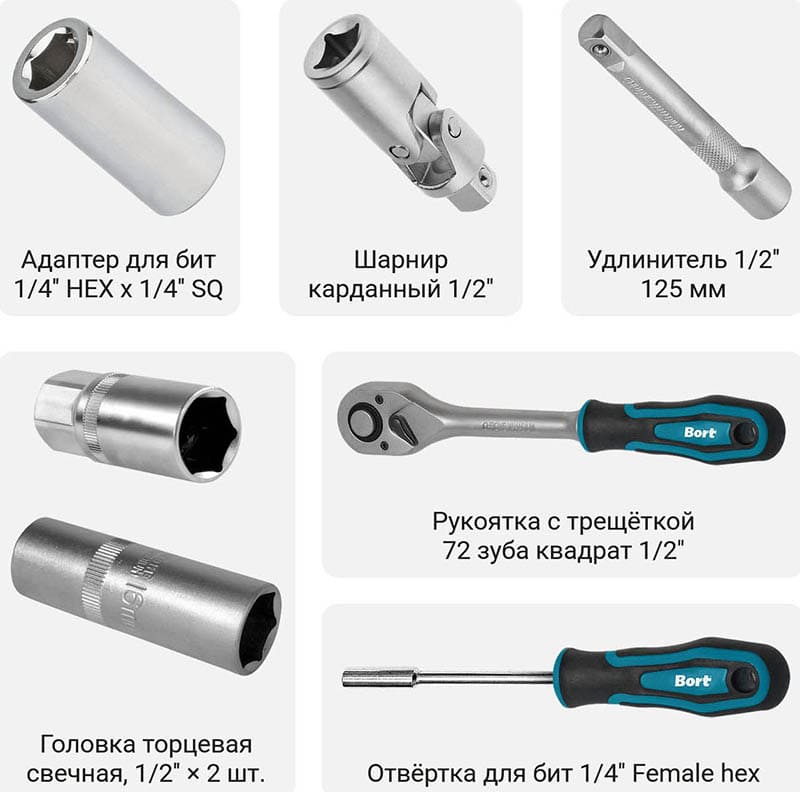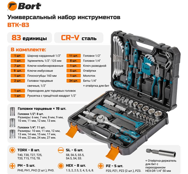 Универсальный набор инструментов Bort BTK-83 (83 предмета)