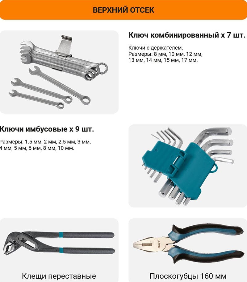 - Все необходимые инструменты для слесарных и ремонтных работ в одном кейсе.