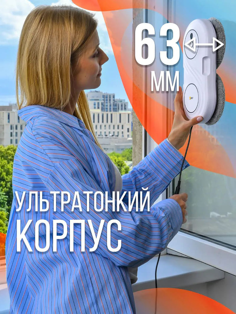 Робот-мойщик окон Даджет U200 — компактное устройство для автоматической очистки стекол, зеркал и других гладких вертикальных поверхностей. Высота корпуса всего 63 мм позволяет использовать его на окнах с решётками, рольставнями и в узких проёмах, где габаритные модели просто не поместятся.