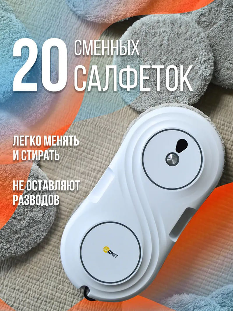 Рабочий узел состоит из двух вращающихся дисков с надетыми на них салфетками из микрофибры. Структура микроволокна позволяет одновременно собирать пыль, впитывать влагу и полировать стекло: