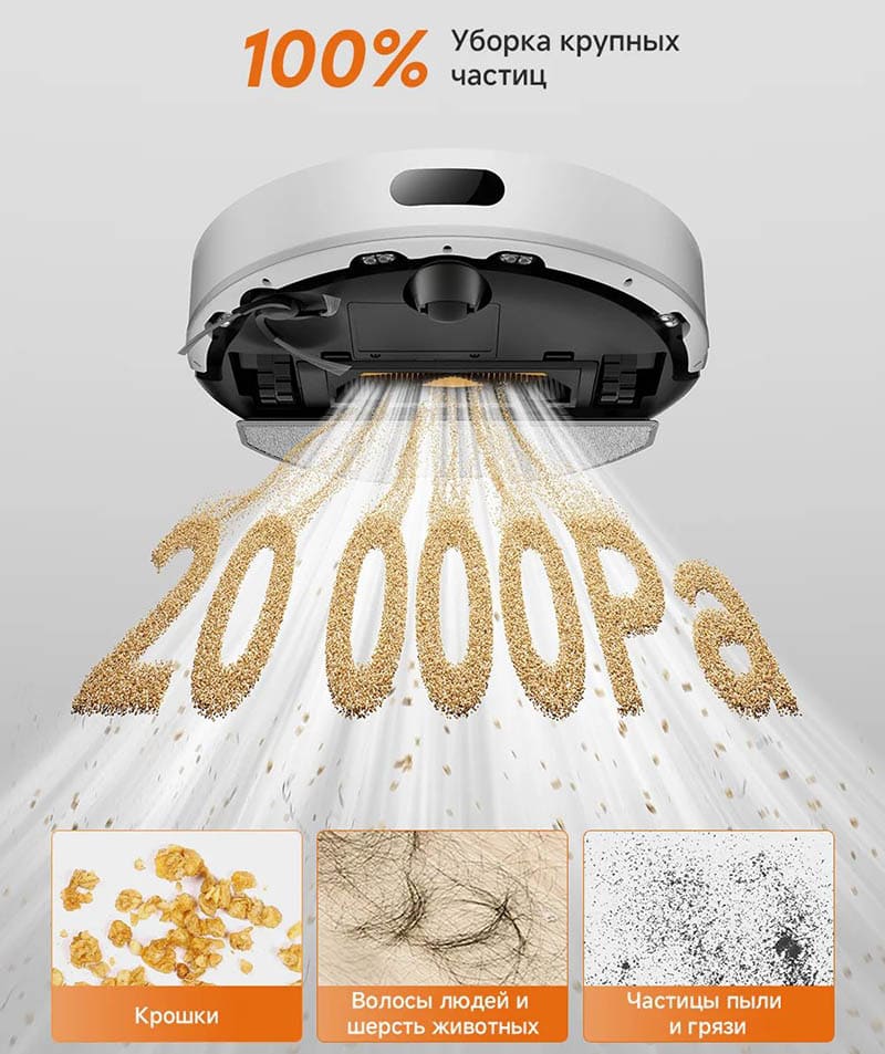 За сбор мусора отвечает система Vormax с заявленной силой всасывания до 20 000 Па. Это помогает вытягивать пыль из щелей ламината/плитки и подбирать песок у входной зоны.