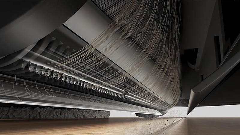 Резиновая щётка предотвращает наматывание волос и шерсти животных. В уборочном блоке установлен гребень с лезвиями Anti-Tangle, срезающими спутанные волосы во время работы, что предотвращает засоры щётки.