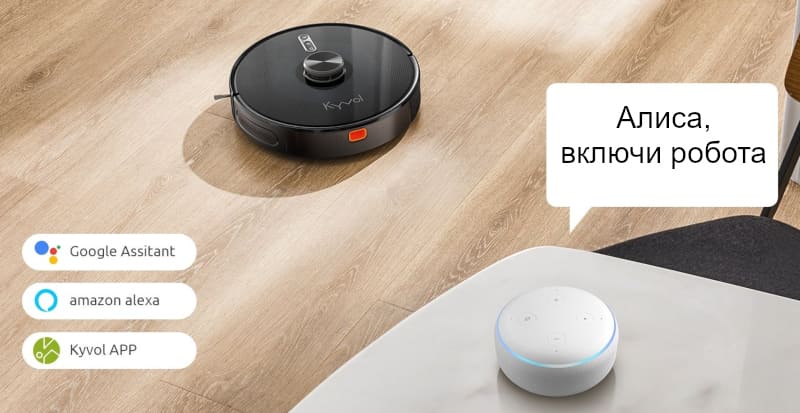 Просто скажите Cybovac S31, чтобы он убрал столовую либо задайте зоны уборки с помощью приложения Kyvol или воспользуйтесь помощью вашего голосового помощника Алиса или Google Assistant.