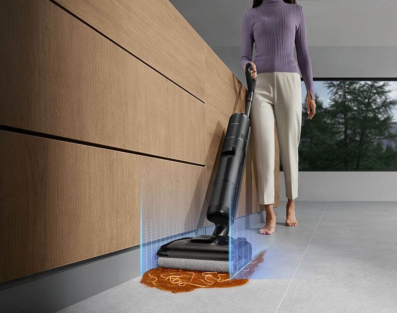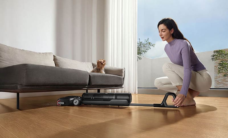 Выполняйте уборку с наклоном ручки на 180°, при котором поддерживается мощность всасывания 18 000 Па, без труда добираясь до пространства под диванами, кроватями и шкафами для удаления скрытого мусора.