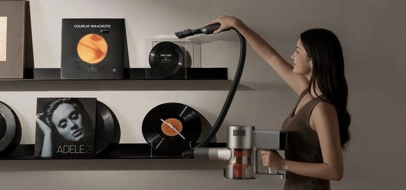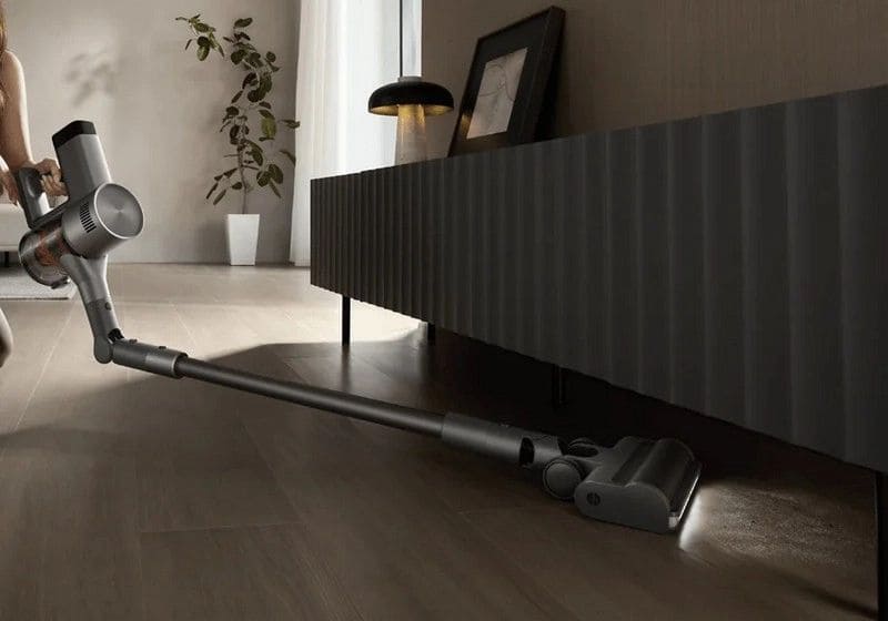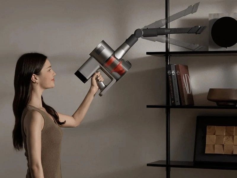 Гибкая трубка облегчает уборку под кроватями, диванами и шкафами: она меняет угол, чтобы доставать до низких участков без постоянных наклонов. В сочетании с подсвечиваемой щёткой проще очищать тёмные пространства под мебелью.