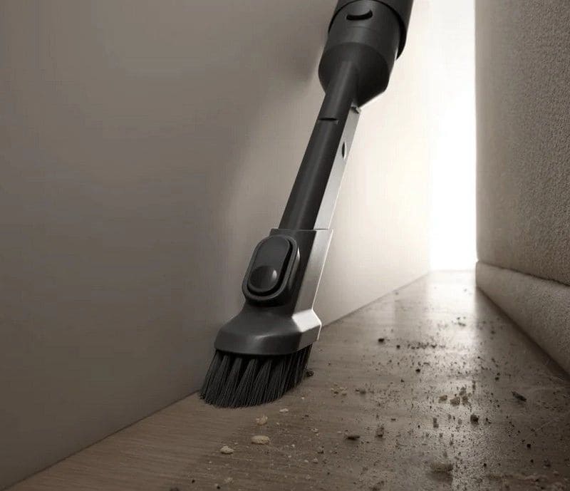 Сфокусированный поток воздуха проникает в углы, стыки мебели и небольшие промежутки, убирая пыль и мусор там, где обычные щётки часто не справляются.