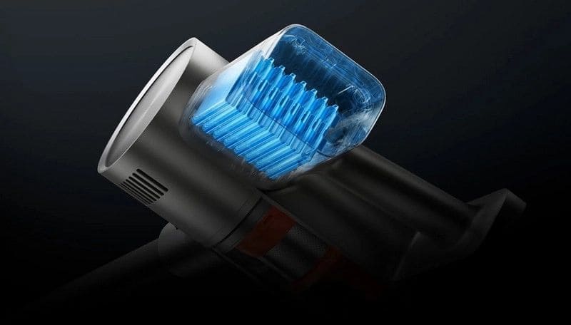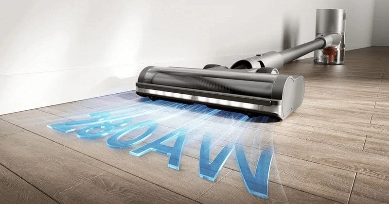 Высокоскоростной бесщёточный мотор обеспечивает мощность всасывания до 280 аВт и разрежение до 25 000 Па — этого достаточно, чтобы глубоко очищать пол, вытягивать мусор из стыков и убирать сложные загрязнения. Пылесос эффективно убирает пылевых клещей, волосы и более крупные частицы, включая грязь в узких щелях.