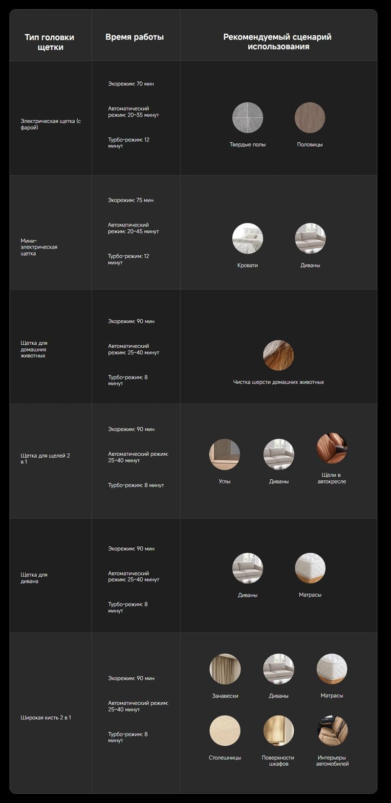 - Количество режимов уборки: 3