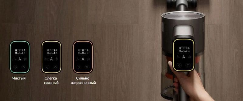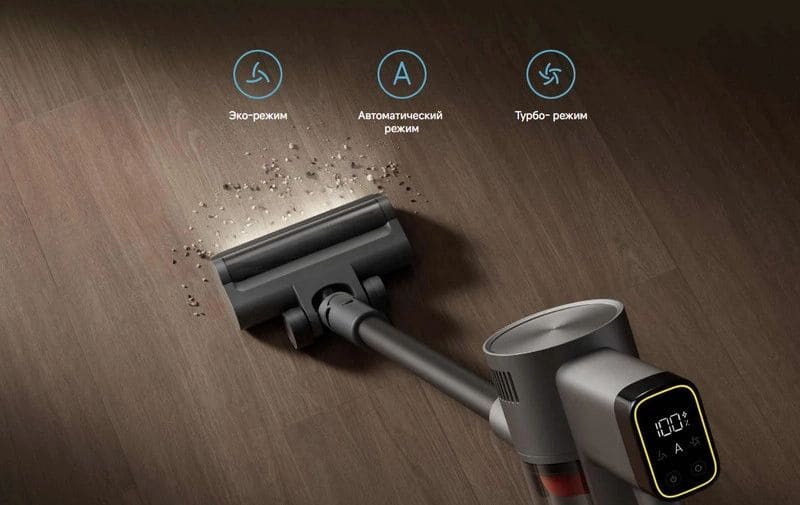 Доступны три режима работы (включая Эко и Турбо), а ключевой сценарий — автоматический режим с датчиком пыли. Пылесос в реальном времени оценивает уровень загрязнения и самостоятельно регулирует мощность всасывания, сохраняя баланс между качеством уборки и экономией заряда.