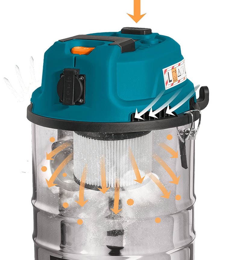 Полуавтоматическая очистка фильтра сохраняет высокую производительность без необходимости частой замены или ручной чистки. Пылесос относится к классу пыли L, обеспечивая высокоэффективную фильтрацию и надежную защиту от вредных веществ.