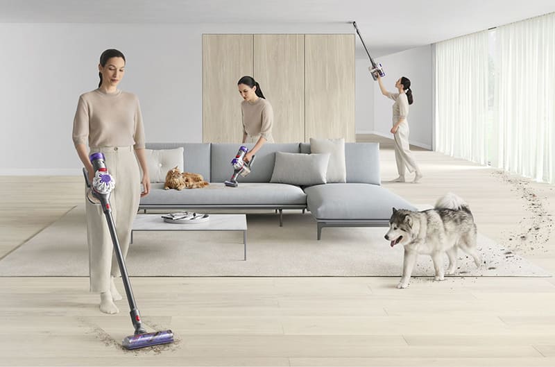 Dyson V8 Advanced — это портативный беспроводной пылесос нового поколения, разработанный для глубокой очистки всего дома. Главное отличие от предыдущих версий V8 — 10% увеличение мощности всасывания до 130 воздушных ватт. Устройство объединяет вертикальный и ручной пылесос в одном приборе, позволяя быстро переходить между уборкой полов и очисткой труднодоступных мест. Это универсальное решение для домов с домашними животными, где требуется регулярное удаление волос и аллергенов.
