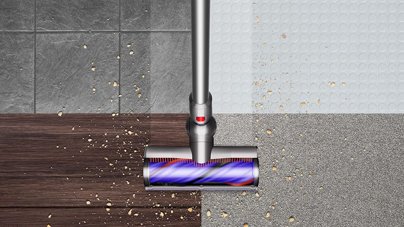 Переключение между режимами осуществляется одним движением без необходимости останавливать уборку. Это позволяет эффективно управлять энергией батареи, используя высокую мощность только там, где это действительно требуется.