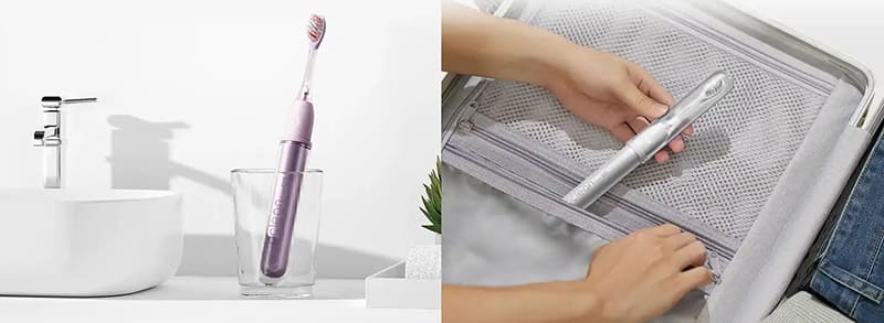 Портативный футляр с пылезащитной крышкой 2-в-1 не только защищает насадку во время путешествий, но и служит удобной подставкой для хранения дома. Специальные вентиляционные отверстия способствуют циркуляции воздуха, предотвращая размножение бактерий. Благодаря таким решениям ваша гигиена остается на высоте вне зависимости от места использования.