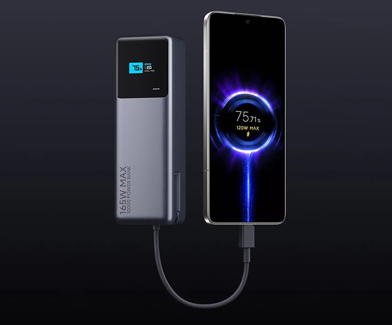 Внешний аккумулятор Xiaomi Power Bank 165W PB1165MI обеспечивает сверхбыструю зарядку с максимальной мощностью.