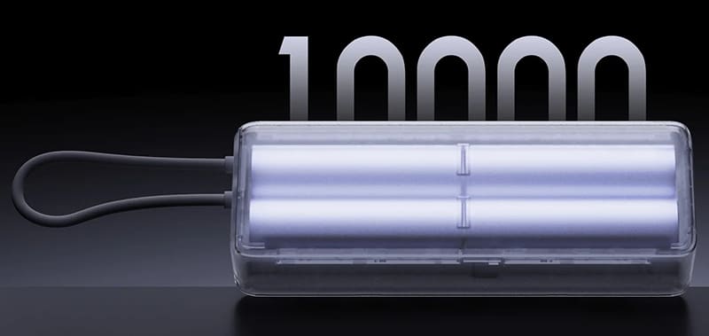 Компактный аккумулятор оснащён четырьмя элементами, общая ёмкость которых эквивалентна 10 000 мА·ч, что гарантирует надёжное питание для повседневных задач и длительных поездок.