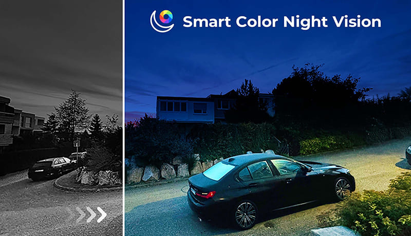 Камера оснащена эффективной системой ночного видения с инфракрасной и белой подсветкой, гарантируя качественную цветную съемку в темное время суток.