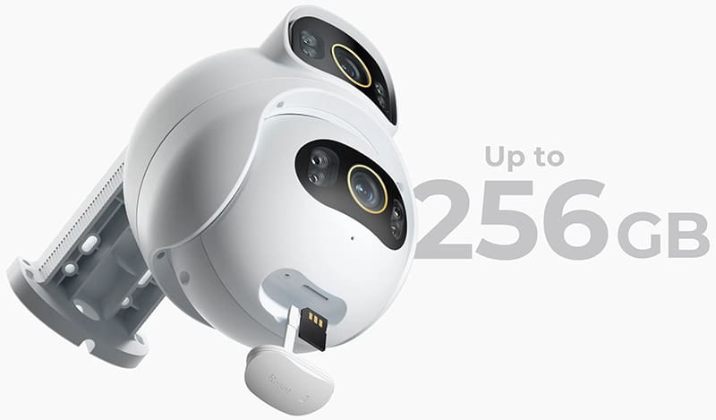 Для сохранения записей предусмотрена поддержка MicroSD карт объемом до 256 ГБ, облачных сервисов, а также NVR и NAS.