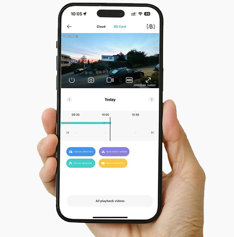 Интеллектуальное распознавание объектов выделяет людей, автомобили и велосипеды, а встроенная сирена и световая сигнализация помогают предотвратить вторжения.