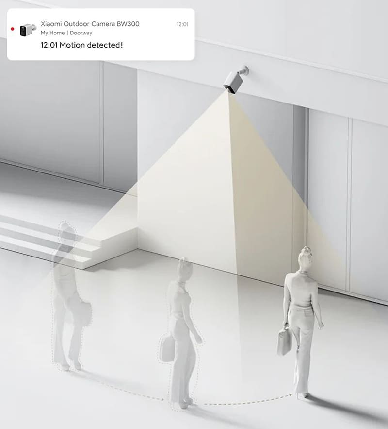 Xiaomi Outdoor Camera BW300 — надежная уличная IP-камера с высоким разрешением 2K (2304x1296), оснащенная 3-мегапиксельным CMOS-сенсором, который обеспечивает чёткую и детализированную картинку с углом обзора 130° и светосильной апертурой f/1.6. Камера предназначена для эксплуатации на улице и имеет защиту от влаги и пыли по стандарту IP67, что гарантирует стабильную работу при любых погодных условиях.