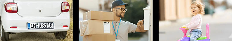 Номера автомобилей даже с большого расстояния, курьерские доставки на дом, игры детей возле дверей вашего дома.