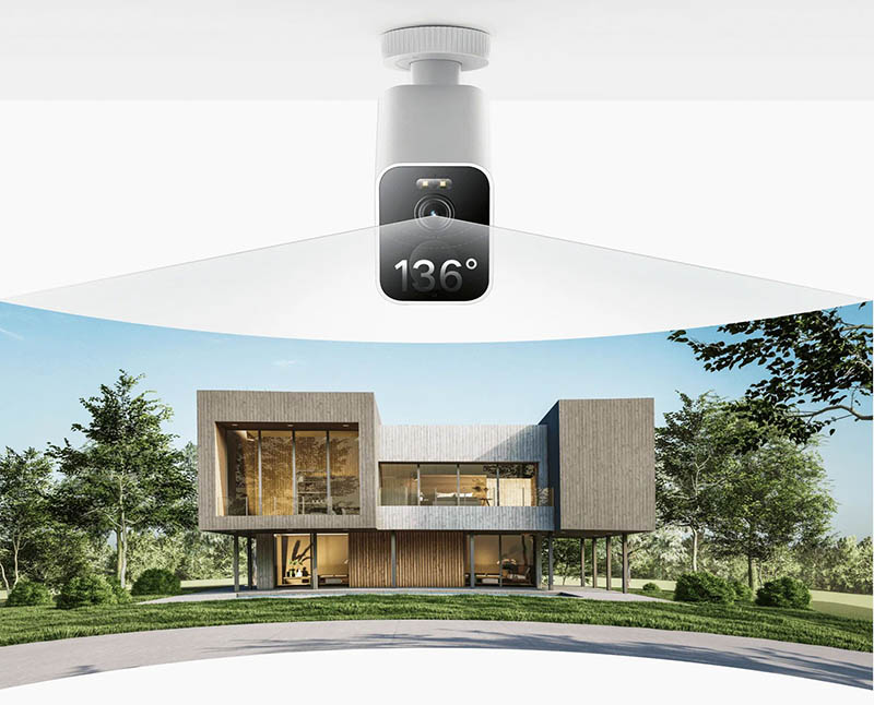 Камера оснащена широкоугольным объективом с углом обзора 136°, который почти не оставляет слепых зон и повышает безопасность благодаря передаче более четкого и детального изображения.