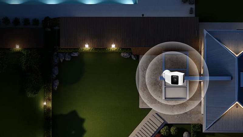 Камера оборудована двумя объективами с поддержкой искусственного интеллекта, мгновенно фиксирующими движение в любой зоне наблюдения. При обнаружении активности устройство моментально начинает запись и отправляет уведомление на смартфон, исключая слепые зоны и обеспечивая полноценную защиту вашего дома.