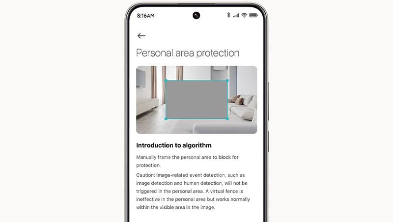 Гибкие настройки приватности позволяют заблокировать просмотр камеры в определённых зонах, делая наблюдение максимально комфортным для всех жителей дома.