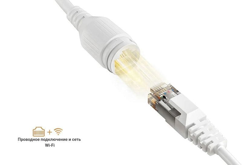 Поддержка Wi-Fi 2,4 ГГц. Камера также оснащена встроенным портом Ethernet, поэтому вы можете выбрать предпочтительный способ подключения. Проводное подключение более стабильное, позволяет снизить количество разрывов соединения и обеспечить удобное использование камеры.