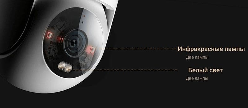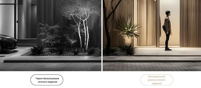 Камера оснащена белой лампой, которая автоматически включается ночью при распознавании человека, позволяя получать цветное изображение в темноте.