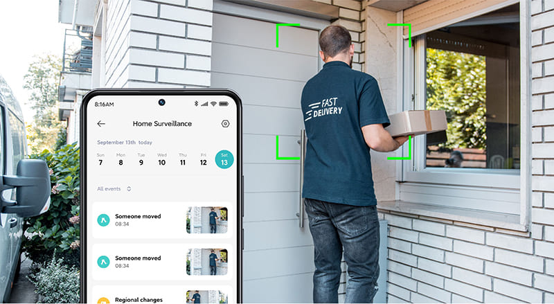 При обнаружении человека алгоритм распознавания людей автоматически начинает запись сигналов тревоги и отправляет напоминание на смартфон.